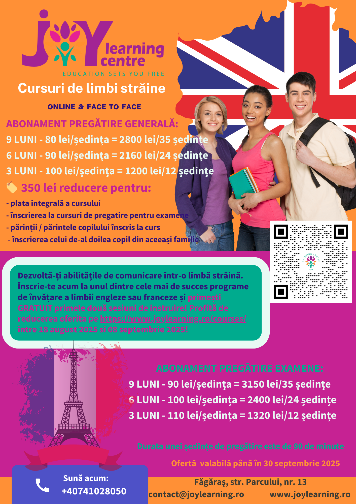 Înscrie-te acumÎți dorești să îți îmbunătățești rapid abilitățile de comunicare într-o limbă străină? Hai la Joy Learning Centre!