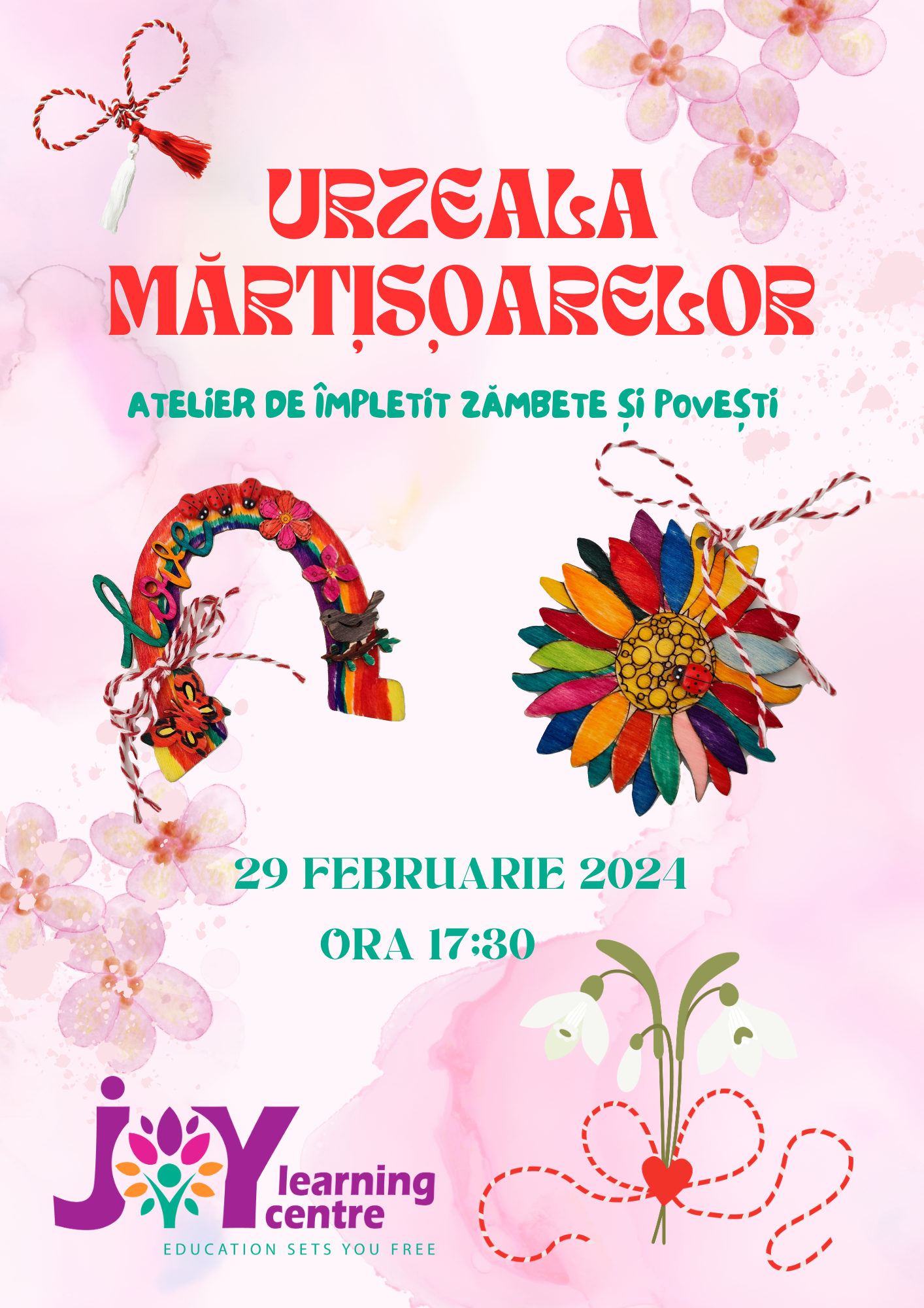 Joi, 29 februarie 2024, începând cu orele 17:30 vă invităm la Urzeala Mărțișoarelor – atelierul de împletit zâmbete și povești, eveniment dedicat confecționării mărțișoarelor! 🎨