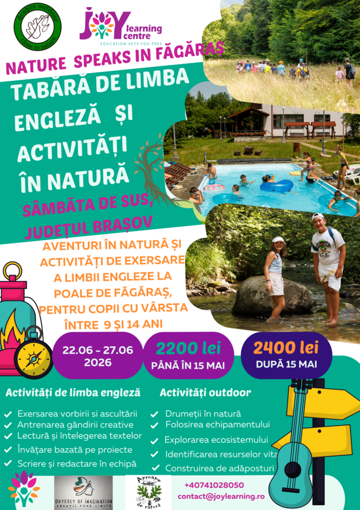Organizate de Joy Learning Centre pe parcursul lunilor iulie și august 2026, taberele 🌿 Nature Speaks in Făgăraș 🌿 sunt acele experiențe pe care cei mici le caută cu nerăbdare și în care cele mai îndrăznețe visuri pline de aventură, bucurie și libertate se transformă în realitate.